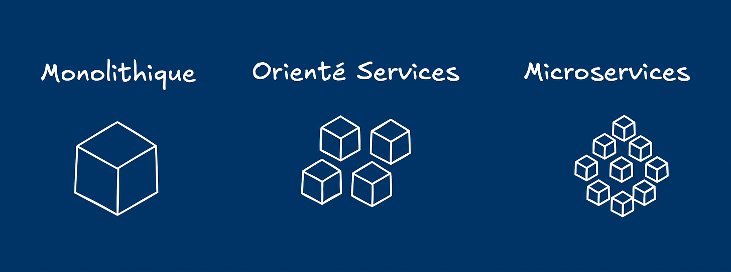 Monolithique : On regroupe toutes les fonctionnalités d'une application dans un seul bloc de code, ce qui simplifie le développement initial mais peut devenir complexe à gérer et à mettre à jour à grande échelle.